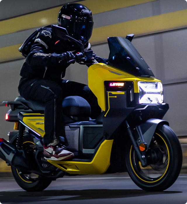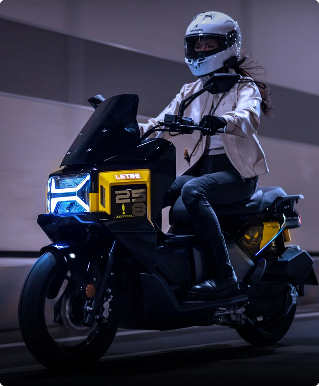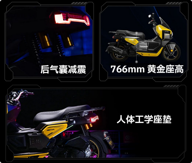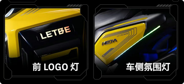 在目前街道上,无论是踏板摩托车还是电动车,大多数都是圆润设计,看久了属实有点审美疲劳。当看到机甲蜂150的时候,直接有一种错觉,就是把科幻片里的未来机甲战车搬到了现实!整车棱角分明,风格很像汽车SUV的“方盒子”,一板一眼,看起来十分硬朗,同时战斗感也十分浓郁!细节上,猎变还给它加入了logo灯、车侧氛围灯等,进一步提升其科技感。