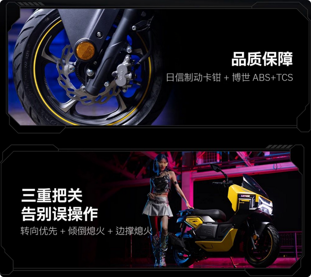 车身设计上,猎变机甲蜂150采用的是高强度双摇篮结构设计,整车刚性十足,驾驶起来不会有松散的感觉。除此之外,该车座椅高度也仅有766mm,即便是女性车友也能驾驭。制动部分,机甲蜂150前后均为碟刹制动,前轮碟刹盘规格260mm,匹配双活塞NISSIN卡钳,后轮为220mm单盘和单活塞卡钳,配备了当前市场的主流配置:博世双通道ABS+TCS牵引力控制系统。